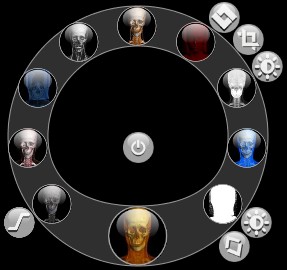 Moving to the left displays soft tissue, moving up sharpens the image contrast.